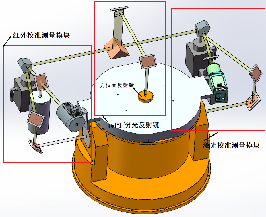 光軸偏移裝調(diào)測試設(shè)備用于地面戰(zhàn)車光電設(shè)備的生產(chǎn)裝調(diào)過程,對被測產(chǎn)品的運動軸、成像光軸及激光打擊光軸進行識別判斷,并測量相對角度關(guān)系,標定精度100μrad。